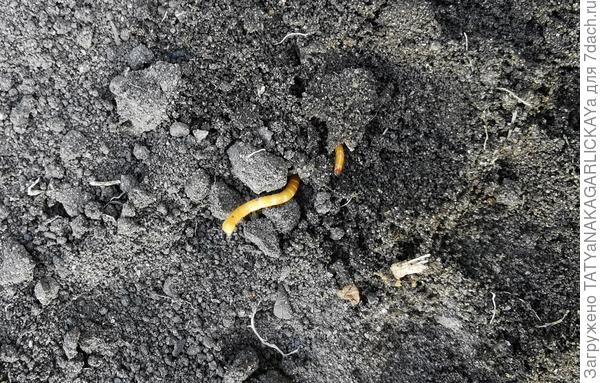 Проволочник – представитель многочисленного лагеря вредителей, личинка жука щелкуна. Давным-давно, еще в детстве, я услышала объяснение о том, кто же такой проволочник. Мне объяснили, что это маленький червячок, которого невозможно раздавить, потому что он твердый как проволока, поэтому так и называется. С легкостью проделывает ходы в картофелинах, оставляя трудноудаляемые червоточины. А цвет у него как у медной проволоки. Очень точное описание.