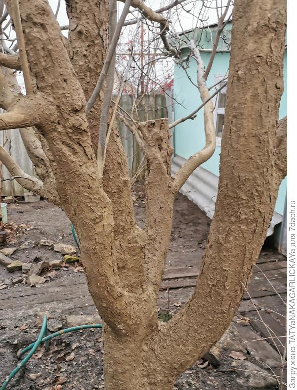 Этой осенью было решено побелить плодовые деревья глиняной болтушкой. Дни стояли теплые и влажные, т. е. погода позволяла заняться защитой деревьев. К чему мы и приступили в один из ноябрьских дней. Маленьким ведром отмерили глину и коровяк (коровяк насыпаем с верхом, т.к. «лепешки» сухие), поочередно высыпали в большое ведро.