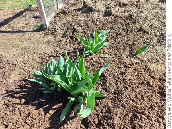 Под яблоней гуляет здоровенный кусок вспаханной земли, и на нём уже начала лезть марь с прочими товарищами. По планам её должон застелить барвинок рука об руку с живучкой, а по краям окружить бордюр из цветов и земляники. Но поскольку все, на кого возложены надежды, не шибко их оправдывают, я решила их потеснить до лучших времён. Мангольдом, шпинатом и разными салатами — вообще они у меня не особо рвутся расти, но может, на дождик получится их выманить?