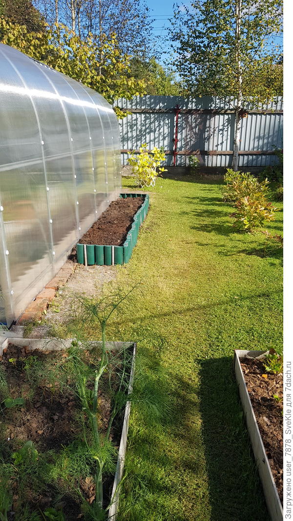 Сын вкопал ленту вокруг последней грядки, теперь их двенадцать, и этого более чем достаточно. Поскольку в садовом центре не было больших рулонов по 25 метров, взяла два девятиметровых — и целого практически хватило на весь периметр. Буквально клочок ещё надо будет доставить и закопать. А вообще — та-дам! — огород полностью сформирован, только брать и сажать. В смысле, готовить на зиму.