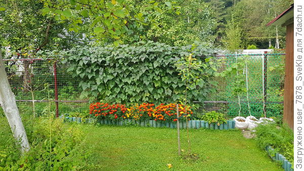 На заднем плане видно место, которое пока ещё не освоено, его предстоит окультурить и начнёт, видимо этот путь освоения земли Фасоль вьющаяся спаржевая...