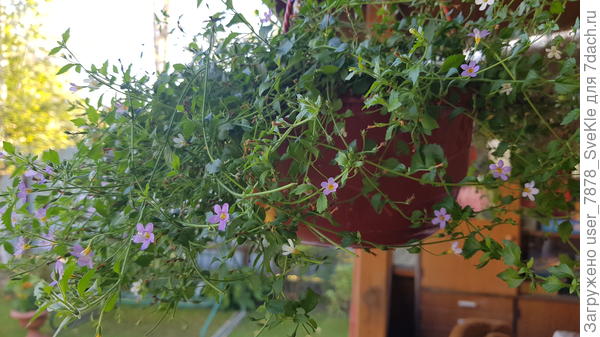 Зато самосевом проросла бакопа! Год назад она сидела на краю клумбы, и вот недавно увидела под листом тыквы цветущий побег бакопы, так мило.