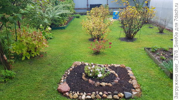 После того, как пристроила на место жемчужный пион, виднеющийся на пне, вооружилась секатором и ковриками и отправилась трудиться во имя возможного светлого будущего. И на это ушёл практически весь день!