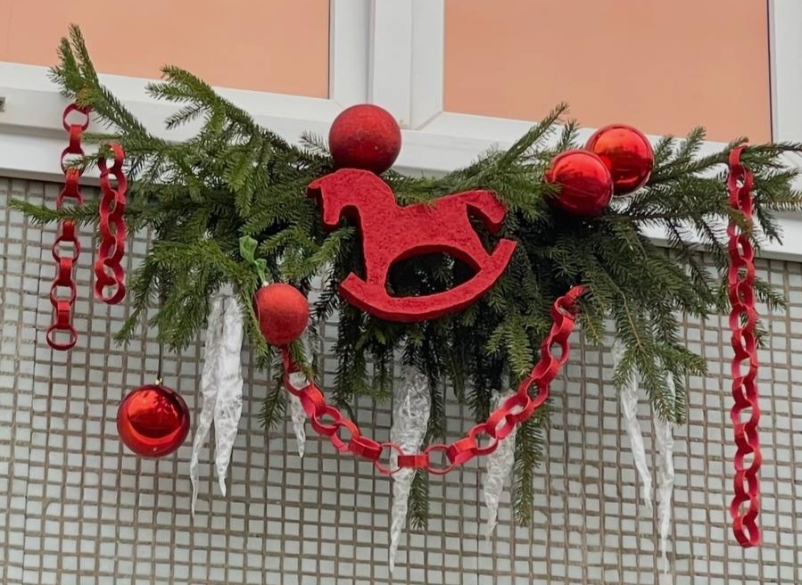 На балконе новогодняя композиция