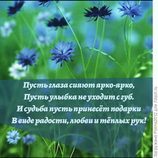 Танечка, пусть будет все, как ты любишь: изумительная природа вокруг с ее многозначительной тишиной, жужжанием деловитых пчел и щебетом птиц, пусть земля радует урожаем, а родные и близкие — любовью и добротой. Здоровья тебе отменного и лета чудесного!