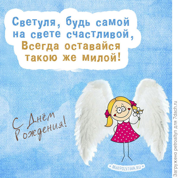 В общем желаю тебе огромного счастья, любви, благополучия и здоровья! А еще сбычи мечт! И чтобы мечты почаще сбывались (исполнялись) дарю тебе маленькую фею с волшебной палочкой, а ежели она с чем не справится, то Ленка в легкую поможет ей нафеячить!