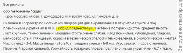 На упаковке с перцем написано «Среднеспелый», а на сайте Госсорта…
