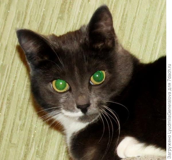 Но здесь тема — глаз. На всех предыдущих трёх фотках — глазки абсолютно разные. Это я об уникальности кошачьих глаз. Нам можно только зрачок расширить, и то с помощью «капелек», или линз цветных. А у них все меняется естественным образом!