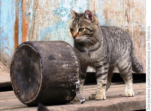 Такими симпатягами любуемся, так и тянется рука погладить. А второй — матёрый пират, битый, шуганный, находящий себе кров в подвалах, сараях — вряд ли к себе подпустит, тем более даст погладить. Да и захочется ли его погладить, разве что из жалости. Я к нему медленно приближалась, очень хотелось крупным планом снять. Сделала несколько кадров торопясь, чтобы не убежал. Он развернулся и медленно поплёлся к глухому забору, протиснулся под ним и исчез из виду. От прыгучего желания сделать удачный кадр не осталось и следа.