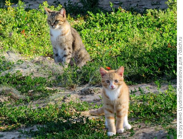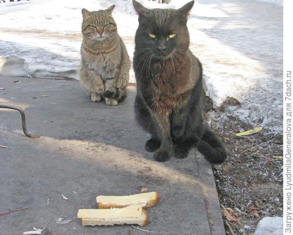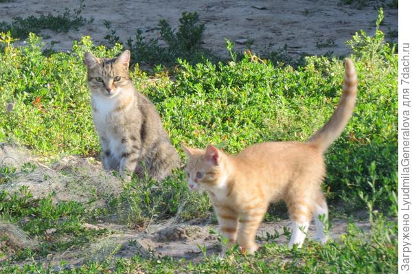 Но много котов приходят к нам и с других кооперативов, а мы приезжаем и подкармливаем, ночуют они на чердаке домика нашего правления, сторожа пристроили лестницу, по которой они легко забираются. Раз! Два! Три! Четыре! Пять! Готовы пищу принимать!