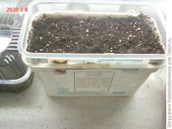 лучок попёр, нынче подарили пять семечек «клоринды» от Аэлиты — взошло пока три, «бибо» взошли все