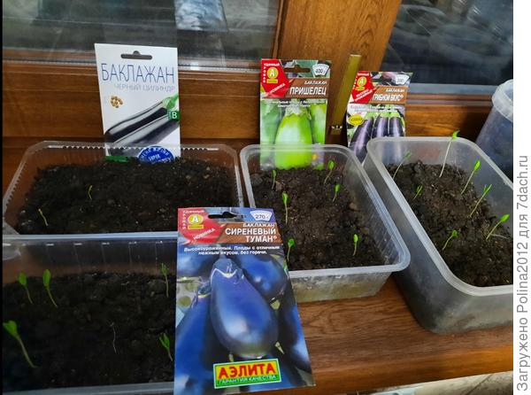 просто кошмар.Сеяла Эпик, Черный цилиндр, Грибной вкус, Сиреневый туман, Пришелец сухими семенами. И еще были не очень свежие семена… баклажан Красавчик(2017 год) Бернар, Диамант их я замачивала, более 12 дней ни один не проклюнулся, ну я же не могу выбросить семена, взяла и посеяла, просто бросила в плошку и присыпала землей. И они все взошли, представляете теперь у меня баклажанов, как у дурака махорки