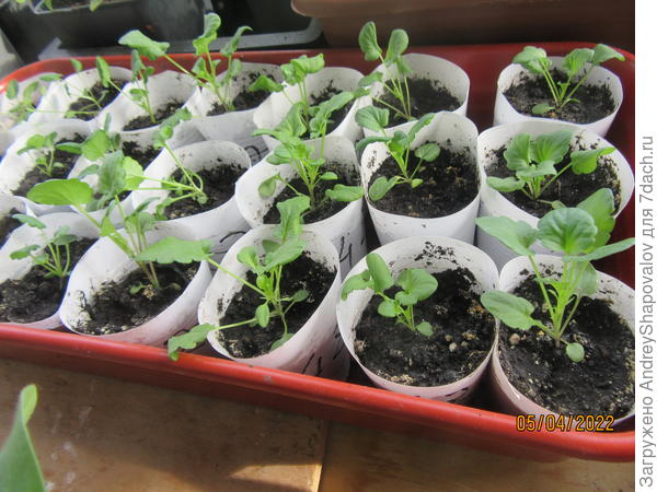 Но что-то у меня пошло неправильно, в результате первые всходы появились из семян 21-го года, семена 22-го взошли немного позже, но количество взошедших на сегодняшний день больше на семенах 22-го года. Такой большой разницы никогда не было. Корни Душистого табака достаточно уверенно пробивают мокрую трёхслойную туалетную бумагу: на Фото трёхслойной бумагой застелена ближняя к фотоаппарату половина стаканчиков (на Фото она нижняя).