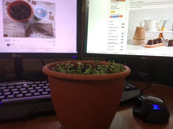 НО! Смена я проращиваю по-разному — лен в землю засунула потому что доведу до 12 см зелень. Но можно было бы прорастить на гидрогеле и потом перенести пророщенные семена в грунт. А можно вообще вырастить зелень на салфетке!
