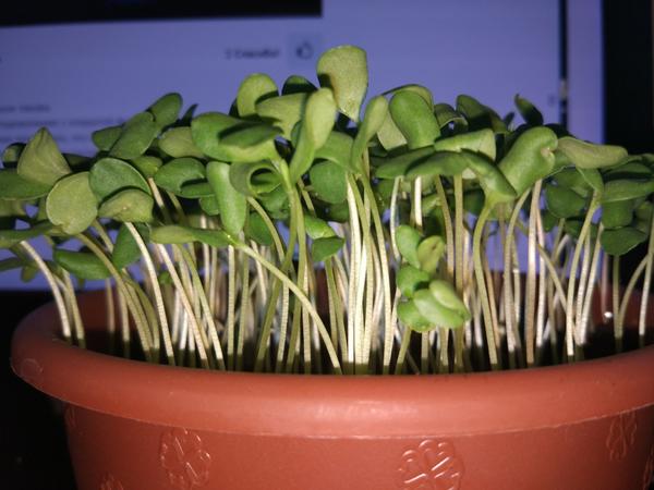 Пока выщипываю (потому что слишком густо взошло) и лопаю с бутербродами как микрозелень