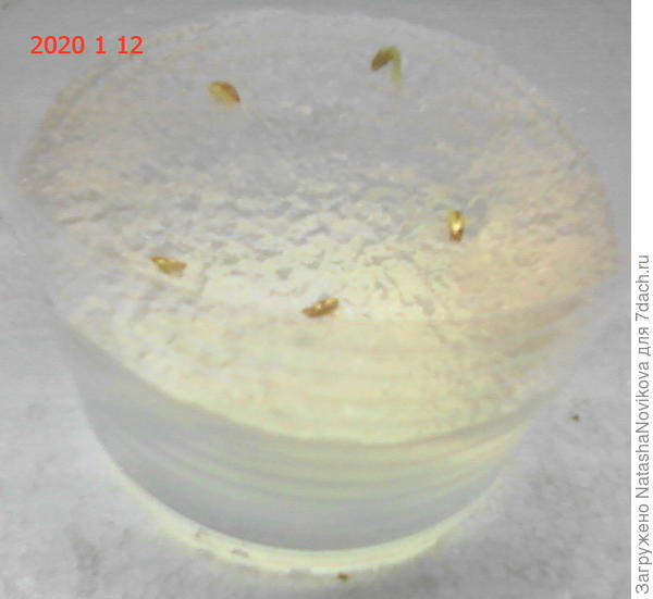 Проростки пошли уже 10 января. Сегодня утром проростки подняли землю шапкой. Пришлось проливать сверху «дождиком» с руки. Вот так неровно они выползли, как я понимаю, из-за гидрогеля))