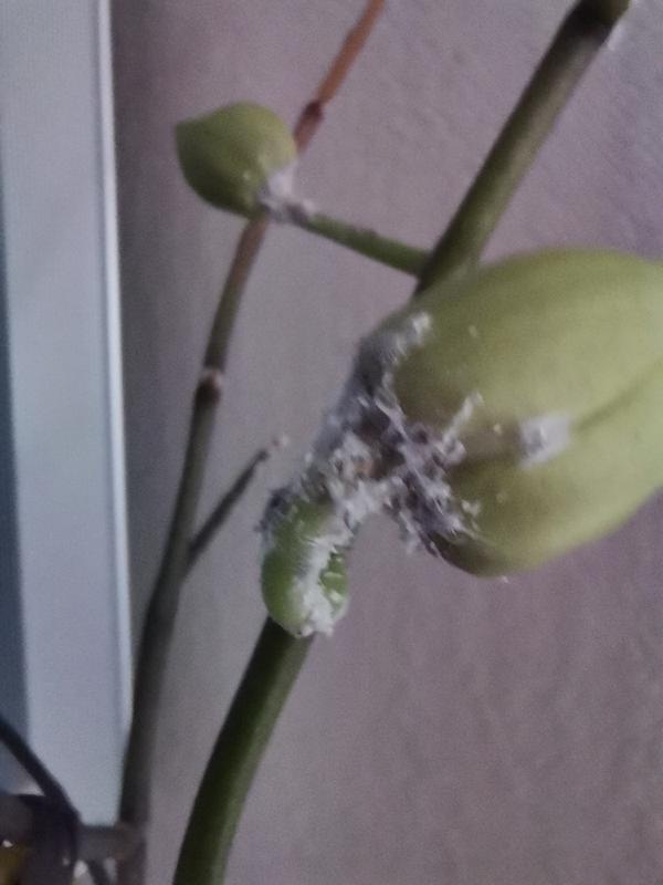 Света Гриднева: Я с распродажи покупала орхидею с этой гадость, грунт выбрасывала сразу, промывала корни, листья. Листья хозяйственным мылом протирала. Горшок тоже моете. И больше его не было. Цветонос я бы срезала с этой гадостью. Можно в интернете заказать более профессиональные средства.