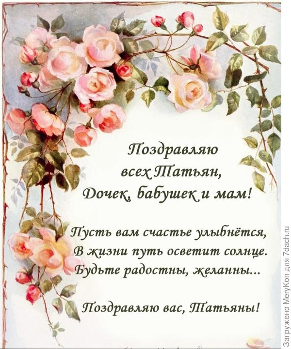 Всех Татьян — с праздником поздравляю! Будьте счастливые, красивые и любимыми!!! А кто не Татьяна, у того тоже праздник-день сту-ден-тааааа. Всех студентов бывших и настоящих поздравляю от души!