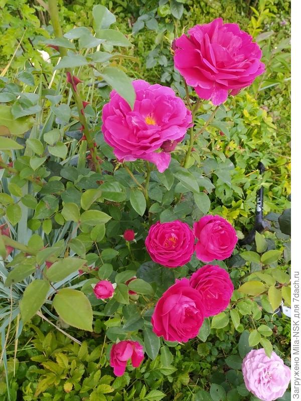Кстати, здесь она в тенечке, яркая. А вот на солнышке в другом цветнике побледнее.