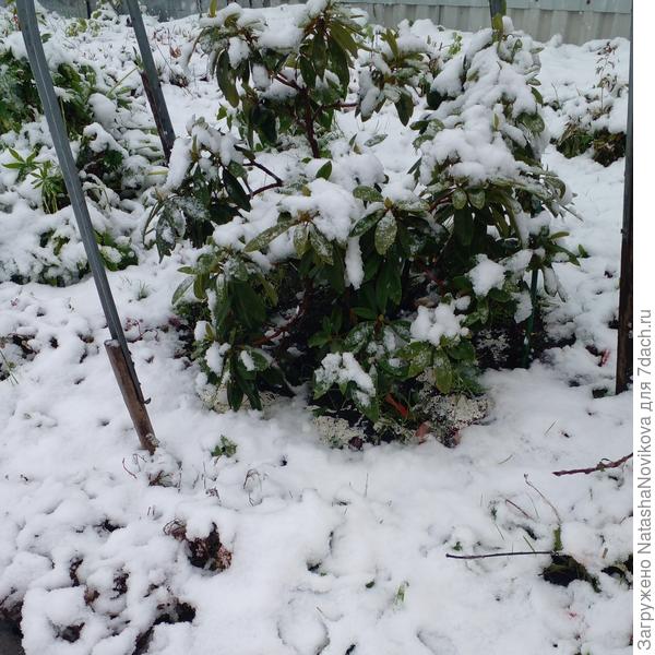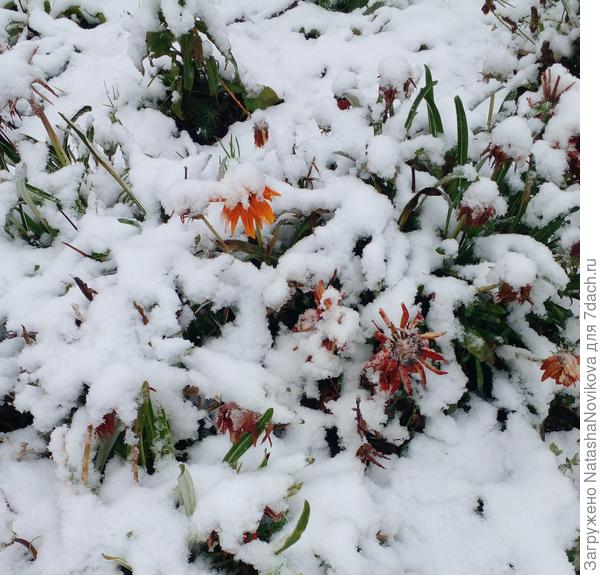 -2° с мокрым снегом — зрелище не радостное, тем более, что многие многолетники придавило тяжелым снегом с цветиками.