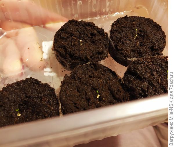 ). Все четыре сорта проклюнулись. Исключение — одна горошинка, она провалилась в ямку таблетки. Боюсь, что не выйдет. Но буду надеяться.