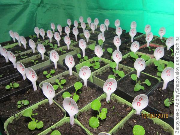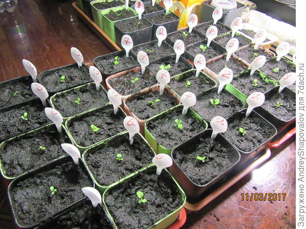 На фото ниже посадка 24 февраля, пикировка 11 марта то есть через 15 дней после посадки семян. Постановка вазонов на ПМЖ — конец мая
