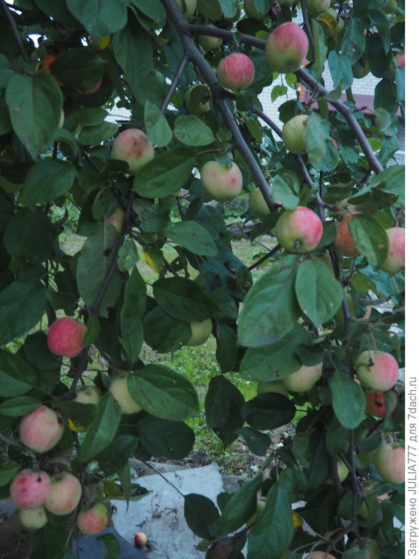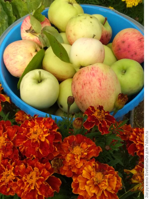 Наконец-то сегодня появилось солнышко, а я побывала на даче! Сколько же яблок нападало… Вот три такие ведра, сегодня на вечер работа — буду сушить. Нынче почти всё яблоки червивые у нас.