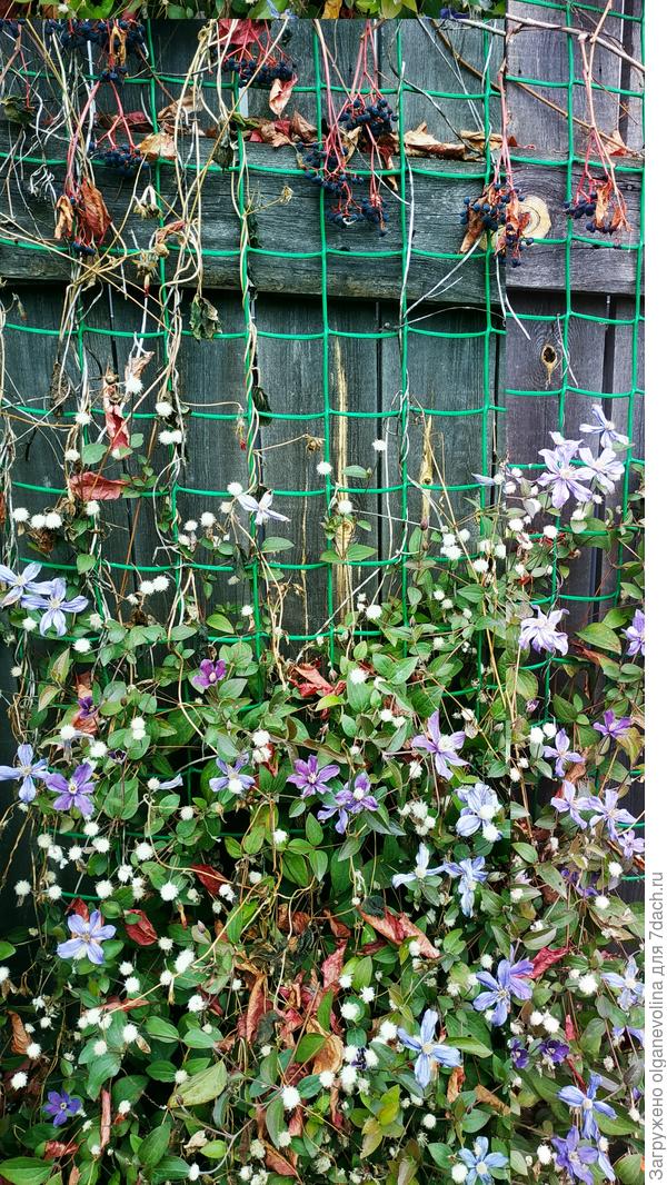 . Настурция перед заморозками решила показать свои красивые цветочки еще раз, также как и клематис и ипомея.