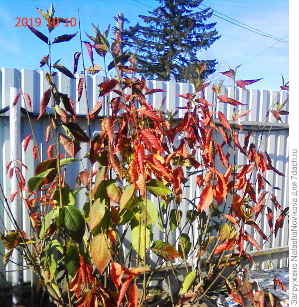 Форзиция и дерен лист не сбросили, не успели. Сегодня кусты развалились под тяжестью снега.