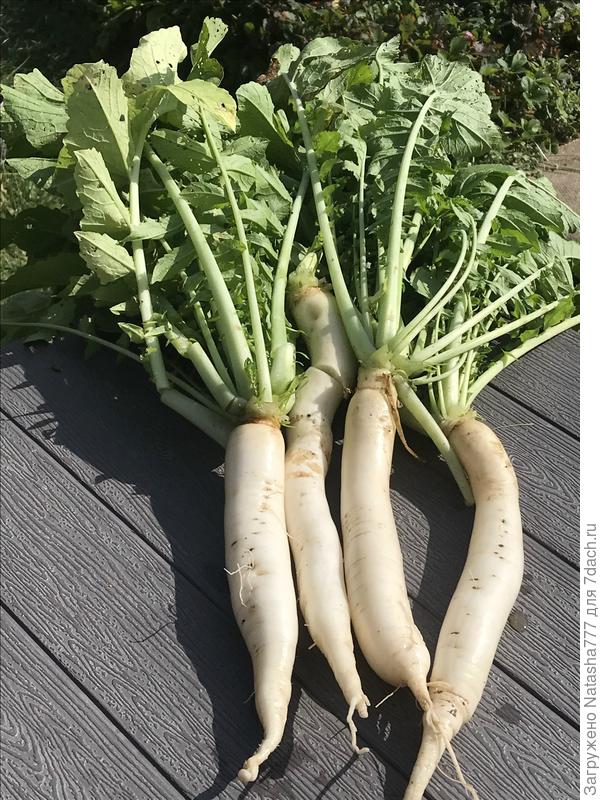 Подготовила грядку под чеснок. Собираем редиску… не помню по счету какой урожай)), дайкон.