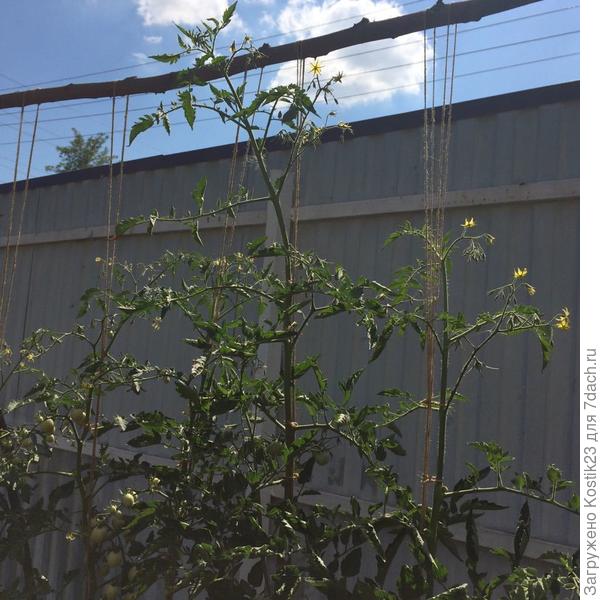 А у меня, кстати, помидоры черри вымахали больше двух метров, и вот не знаю что делать, так как закончилась подвязка и они упёрлись в горизонтальную перекладину