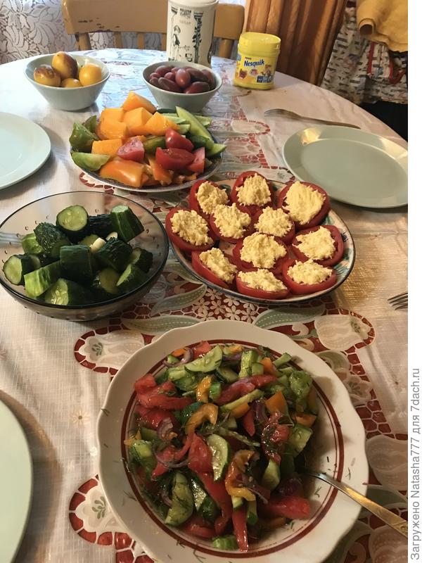 Огурцов и томатов очень много закатали, как никогда. Лечо еще не варили, перец тоже тормозит в развитие.