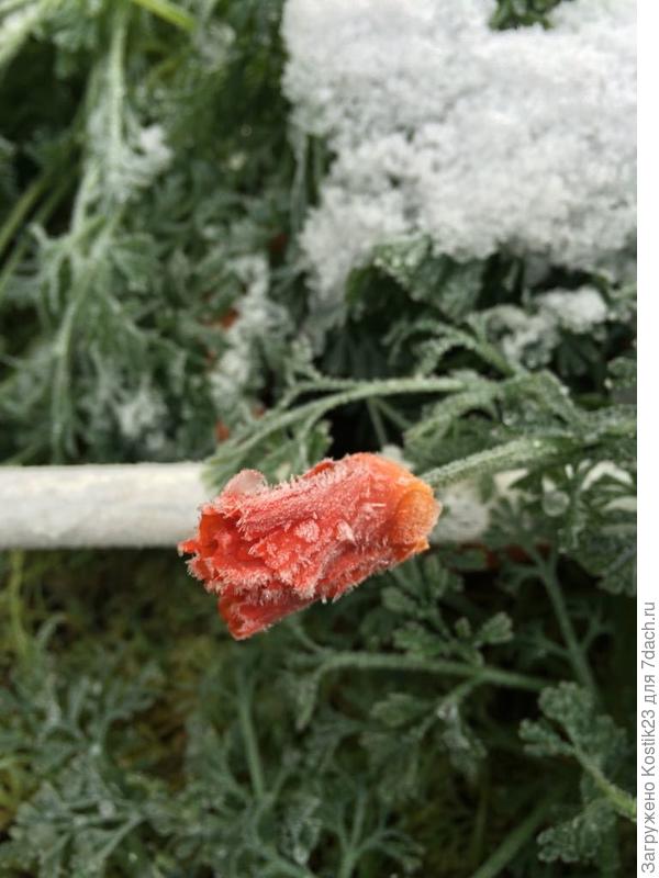 А это сегодня утром -5 но снега уже нет, только на цветах!
