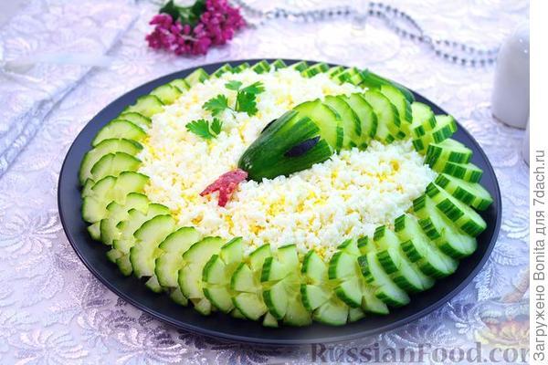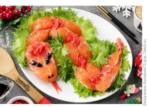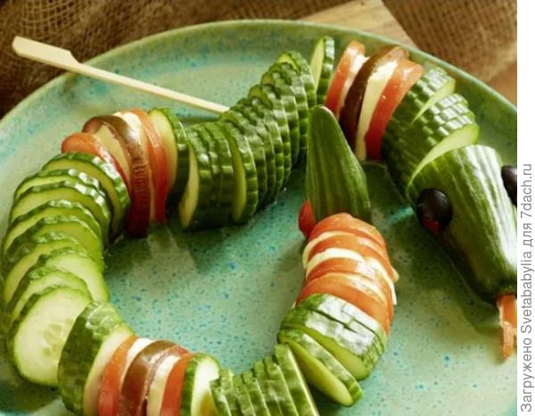 Недавно видела в интернете салат в виде змейки. Состав не новый: курица, яйца, сыр, ананасы, шампиньоны. Но поверхность была покрыта «чешуйками» из хлопьев. А если сделать чешую из чипсов? Если много гостей, длинный стол, большое блюдо через весь стол с солидной змеей, покрытой чипсами… И назвать Салат Анаконда...🙂