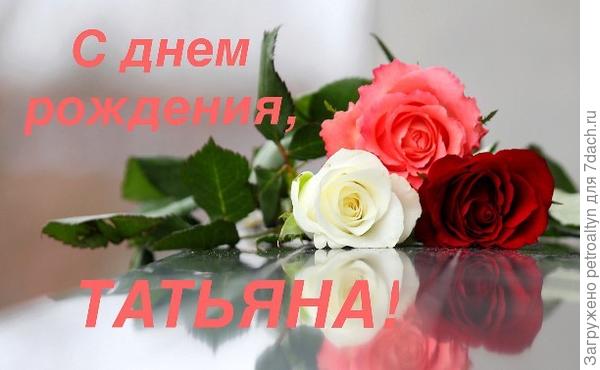 Танюша! Поздравляю с днем рождения! Я желаю тебе здоровья, отличного настроения, удачи во всех твоих делах, любви родных и близких тебе людей! Пусть все задуманное сбудется!