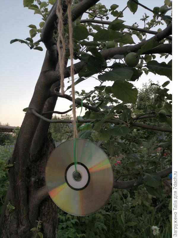Диски, отпугивалки, блестящая сова висит прямо сейчас. И тут же дрозд чешет на разведку.