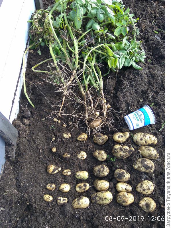 В прошлом году соседка с такими же ростками давала картошку. У них опять в лунке было 5-6 штук по 80-90 грамм, а у нас (её же картошка) 10-30 и до 450 г- от агротехники, получается очень сильно урожай зависит.