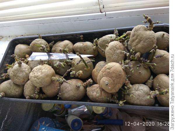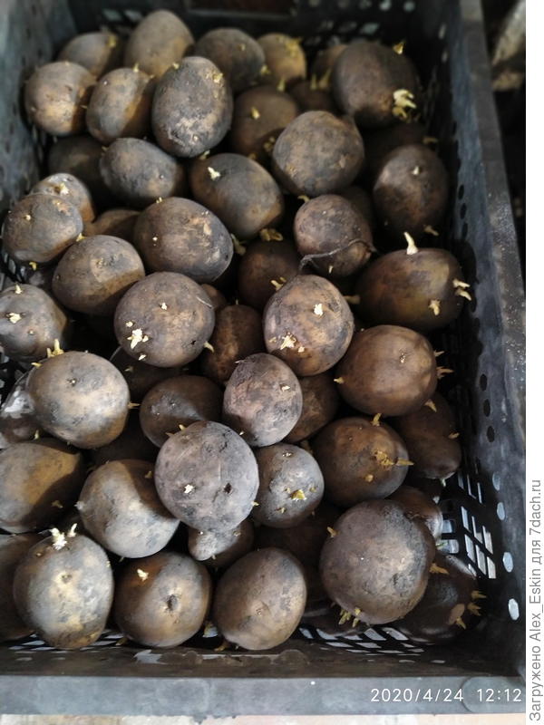 Семенную картошку отобрал ещё в марте, прямо в подполье, сейчас стоит на кухне в доме в пластиковых корзинах, кухня тёмная, печь топлю через раз, так что не жарко, градусов 18, росточки даёт дружно, ничем не обрабатывал, до теплицы ещё далеко… Наверное, из Садов России ничего не пришлют, на сайте тишина, хотя уверили, что все заказы будут выполнены.И местных продавцов на рыночке нет, штрафов боятся.Наверное, придётся только свой семенной фонд задействовать, жаль, хотел в этом сезоне попробовать новые сорта.