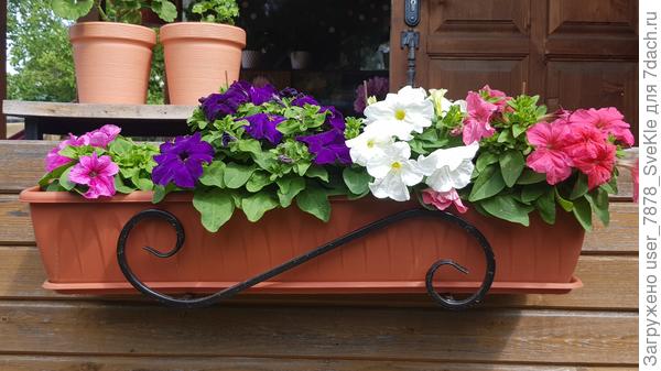 Петуньи и примкнувшая к ним одинокая эустома на заднем алане
