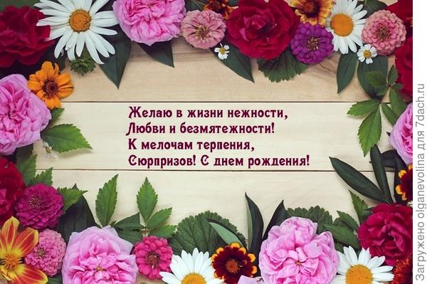 Пусть каждый день приносит только добрые вести и радость! Пусть лето будет тёплым и щедрым, пусть дом будет полной чашей, а сад радует урожаем! Крепкого здоровья и самого чудесного настроения!
