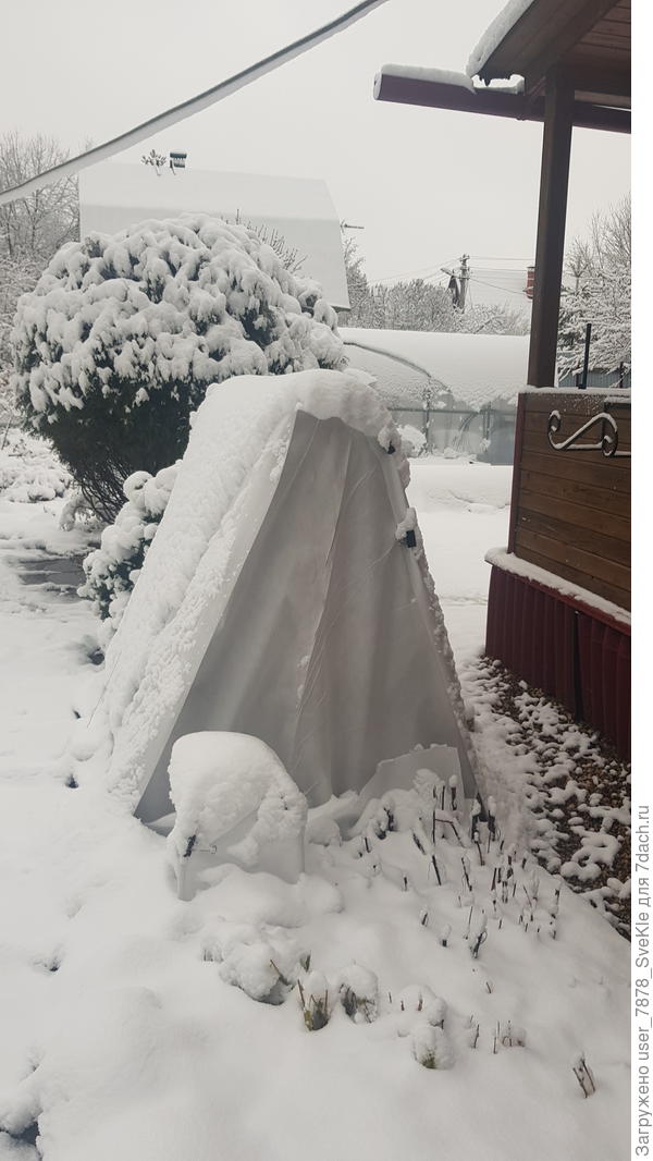 Наташа, наш сегодняшний пейзаж на даче поверг в шок. Бывало, конечно, что снежок пролетал вперемешку с дождем и в июле, но обильного снегопада в конце мая не припомню. 40 км от города — совсем другой климат.