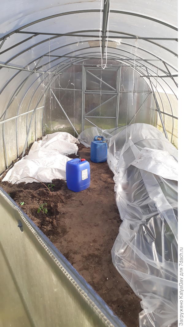 Томаты высадила, так сказать, на свой страх и риск, ибо ночью у нас плюс, но пока небольшой, возможны заморозки, но земля в теплице тёпленькая, работаю без перчаток, не холодно. Времени совсем нет, сегодня вырвалась — скорее посадила. Завтра во вторую теплицу перцы натыкаю, в той вообще жарища, она из старых оконных рам.