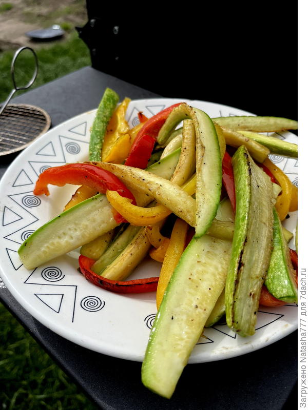 Шикарно смотрится… Наверное, вкусно получается? А у нас всё просто: на решётке перцы и кабачки жарим… Потом доча с давленным чесноком их перекладывает -тоже вкусно получается…
