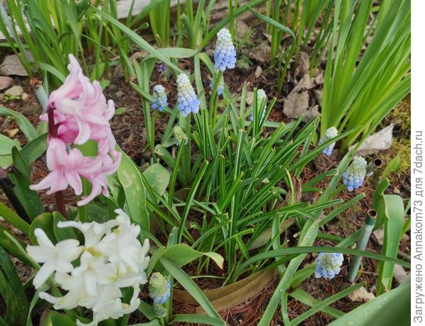 Зато первоцветы дольше цветут. А остальные сортовые мускари еще не явили себя во всей красе. Пока только эти.