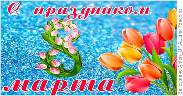 Дорогие подруженьки-семидачницы, поздравляю вас всех с праздником весны! Пусть каждая будет счастлива и любима, пусть здоровье не подводит, пусть ладятся все дела, пусть мужчины обожают, а дети радуют! И для всех море цветов!
