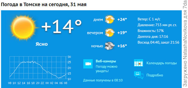 Начало июня в Томске и по территории области ожидается аномально жарким — столбики термометров будут находиться на уровне +30°С и выше — до +34°С. На 1-7 июня объявлено оперативное предупреждение, томичей просят соблюдать меры безопасности.