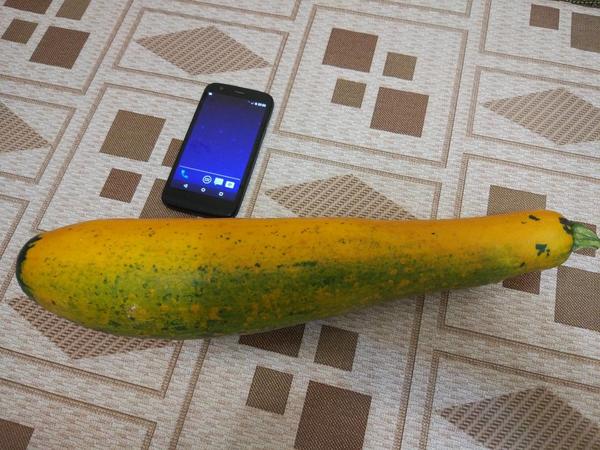 Подскажите, что это выросло — перезревший кабачок или тыква? На фото ложка столовая, чтобы понять размер.