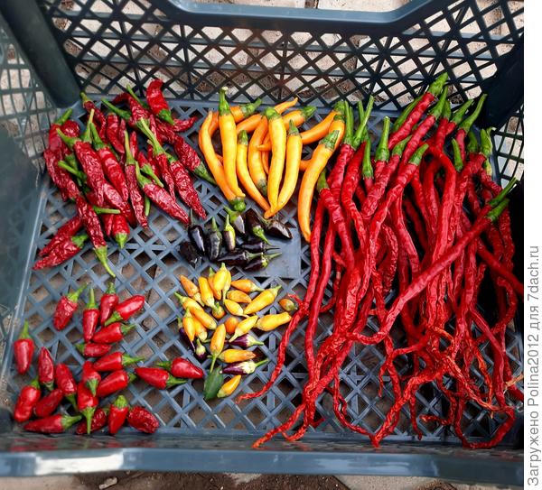 А вот острый, разных сортов, дал много маленьких перчиков. Даже удалось баночку замариновать.