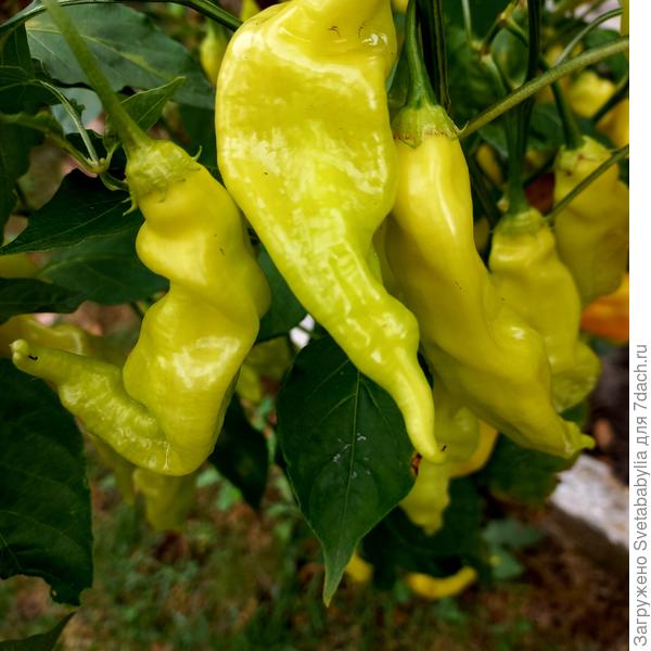 толстостенный. Хороший урожай дал нынче жёлтый гибрид Джемини. Крупный, в виде языка, толстостенный и вкусный. Уже давно собираю свои семена, хоть и говорят, что нельзя. Урожай бывает разный, но вкус отличный. Урожайность оранжевых перцев Оранж Вандер была средняя, но не подвёл мой любимчик Апельсин. Плоды мелкие, но очень вкусные, сладкие, ароматные. Их много. Перцы жгучие дали очень хороший урожай! Выращивала два корня Дон Санчо с крупными плодами и один куст Перчинки с мелкими длинными симпатяшками.