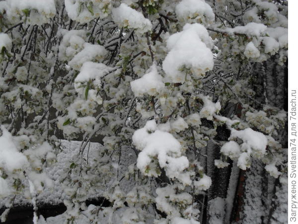 Помню такую же картину у нас одиннадцать лет назад. Только произошло это на 9 мая. У меня томаты уже были высажены. Теплица плёночная была, огромная. Всю ночь пришлось бегать и снег с плёнки сваливать. Плёнка провисла от тяжести, приходилось изнутри поднимать спиной эти огромные провисы со снегом. Тоже деревьев цветущих много сломало тогда. Ужас!